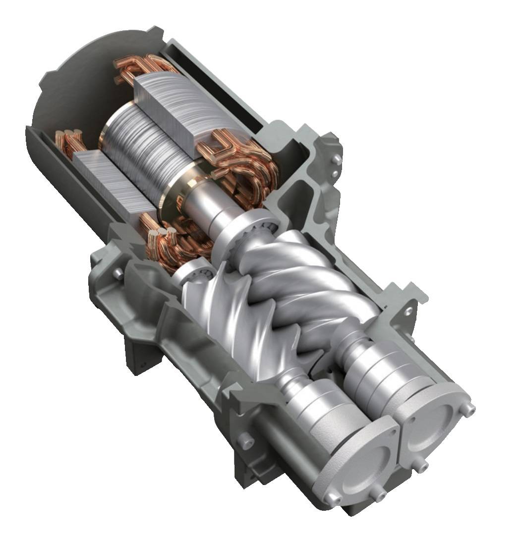 Loại máy nén này sử dụng hai trục vít quay ngược chiều nhau để nén môi chất làm lạnh.