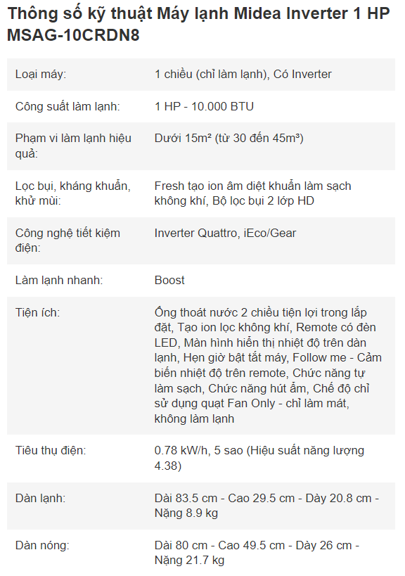 Máy lạnh Midea Inverter 1 HP MSAG-10CRDN8
