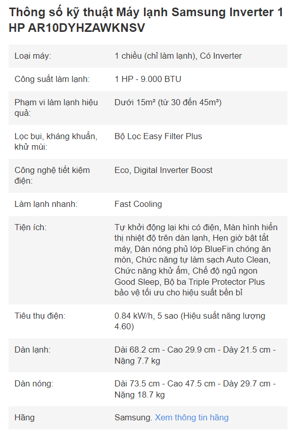 Máy lạnh Samsung Inverter 1 HP AR10DYHZAWKNSV là sản phẩm mới được Samsung trang bị đa dạng các công nghệ có thể kể đến như Digital Inverter Boost, Fast Cooling, bộ ba Triple Protector Plus, bộ Lọc Easy Filter Plus,...