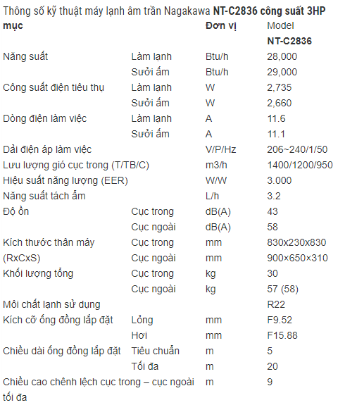 - Hãng sản xuất: Máy lạnh Nagakawa